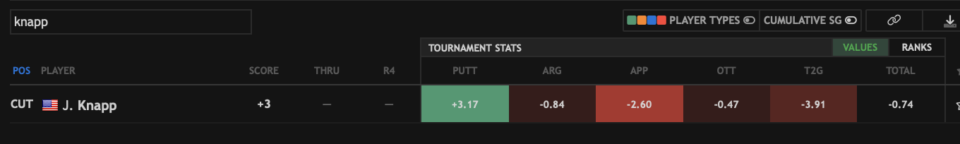 We’re not automatons though. If I see green on a tourney matchup vs some average player who is solely there through a massive course fit bump then I can think twice. The thing is that once he starts playing well, or in Majors, he starts being matched vs legit golfers. Bhatia the past couple of days has felt like a good bet vs Brooks because he is simply playing better golf. I’ve paid the price but feel fine with it.